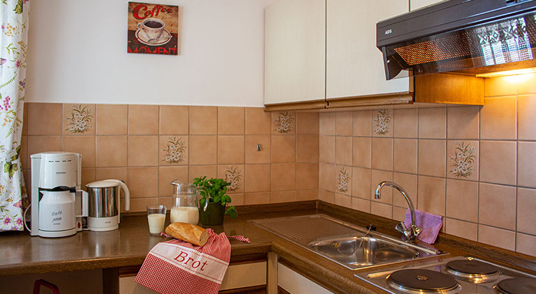 ist 53 m² liegt im 1. Stock und ist für 1-4 Personen geeignet. Die Wohnung ist allergikergeeignet und verfügt über einen Schlafraum mit Doppelbett, Bettwäsche und Kinderbett. Komplett ausgestattete, separate Küche, Wohnraum mit